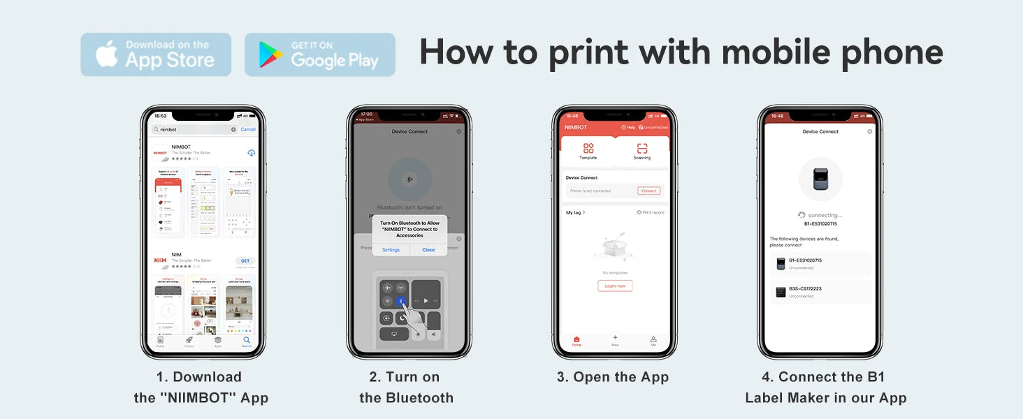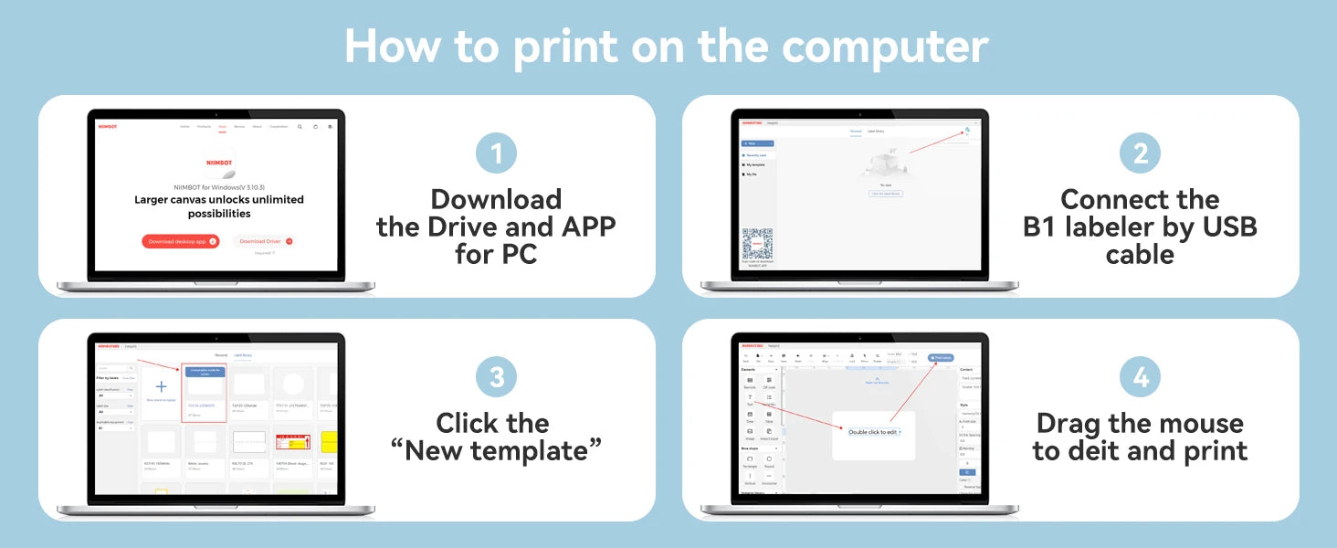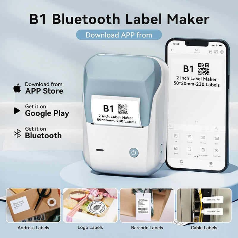 EASY TO USE :B1 Bluetooth label printer supports iOS & Android and PC. The app included more than support 30+ fonts/Languages, 100+ borders, and 1500+ symbols. Just need to download the free app, choosing and connecting printer model B1 from NIIMBOT APP, Then Enjoy Printing.